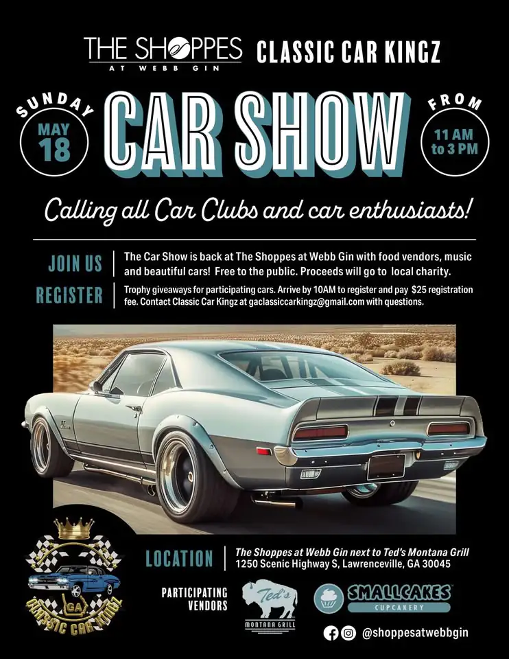 Calling all Car Club and Car Enthusiasts! The Car Show is back at The Shoppes at Webb Gin with food...